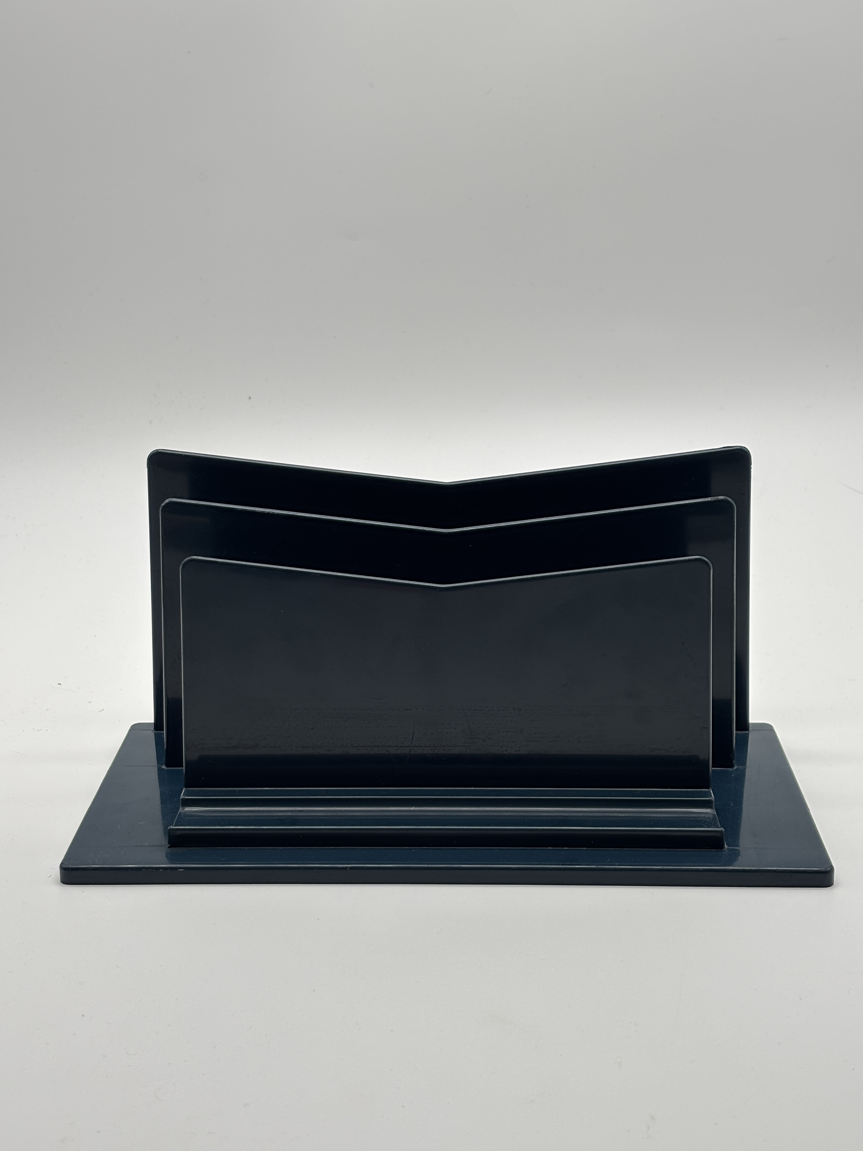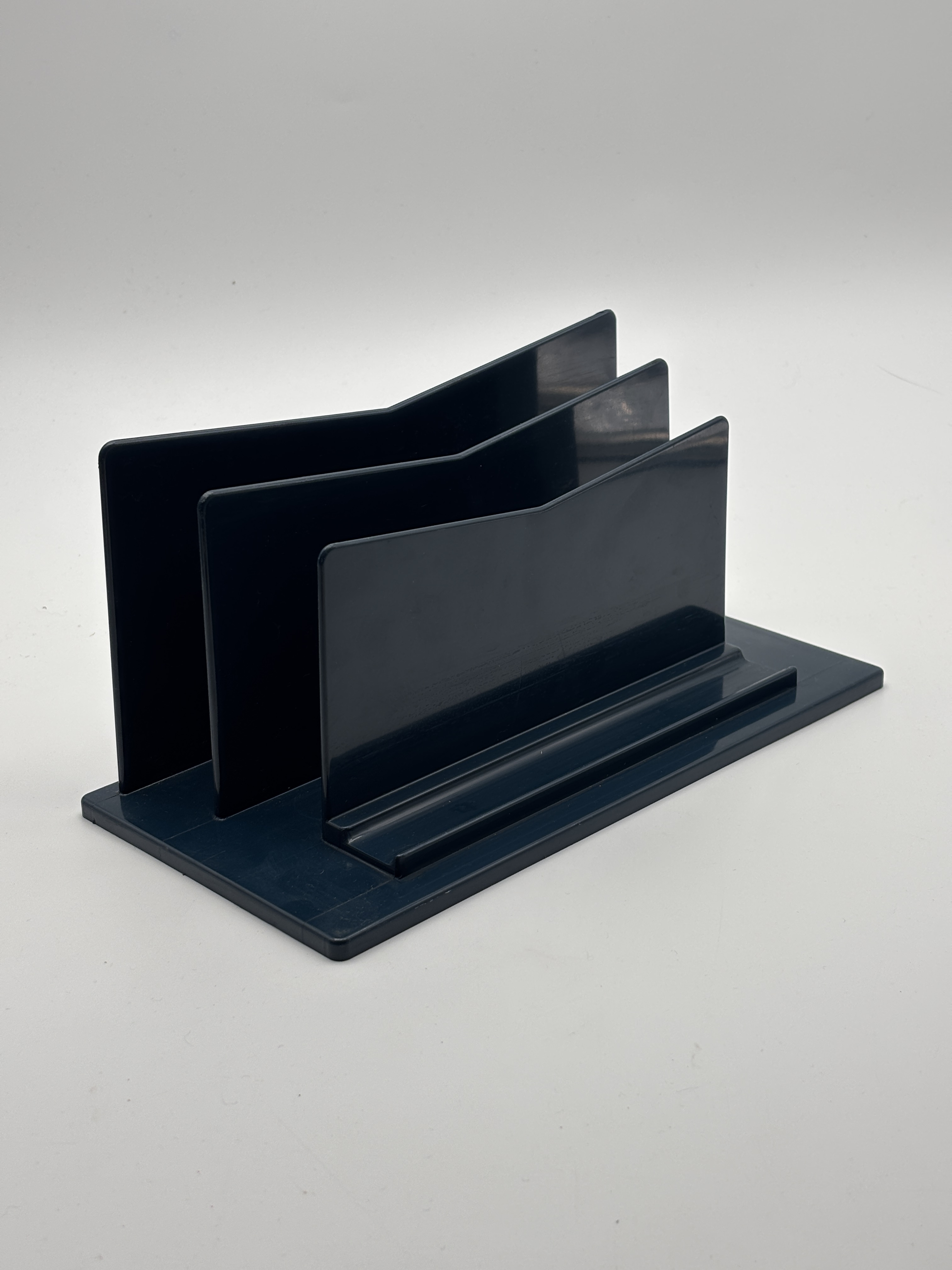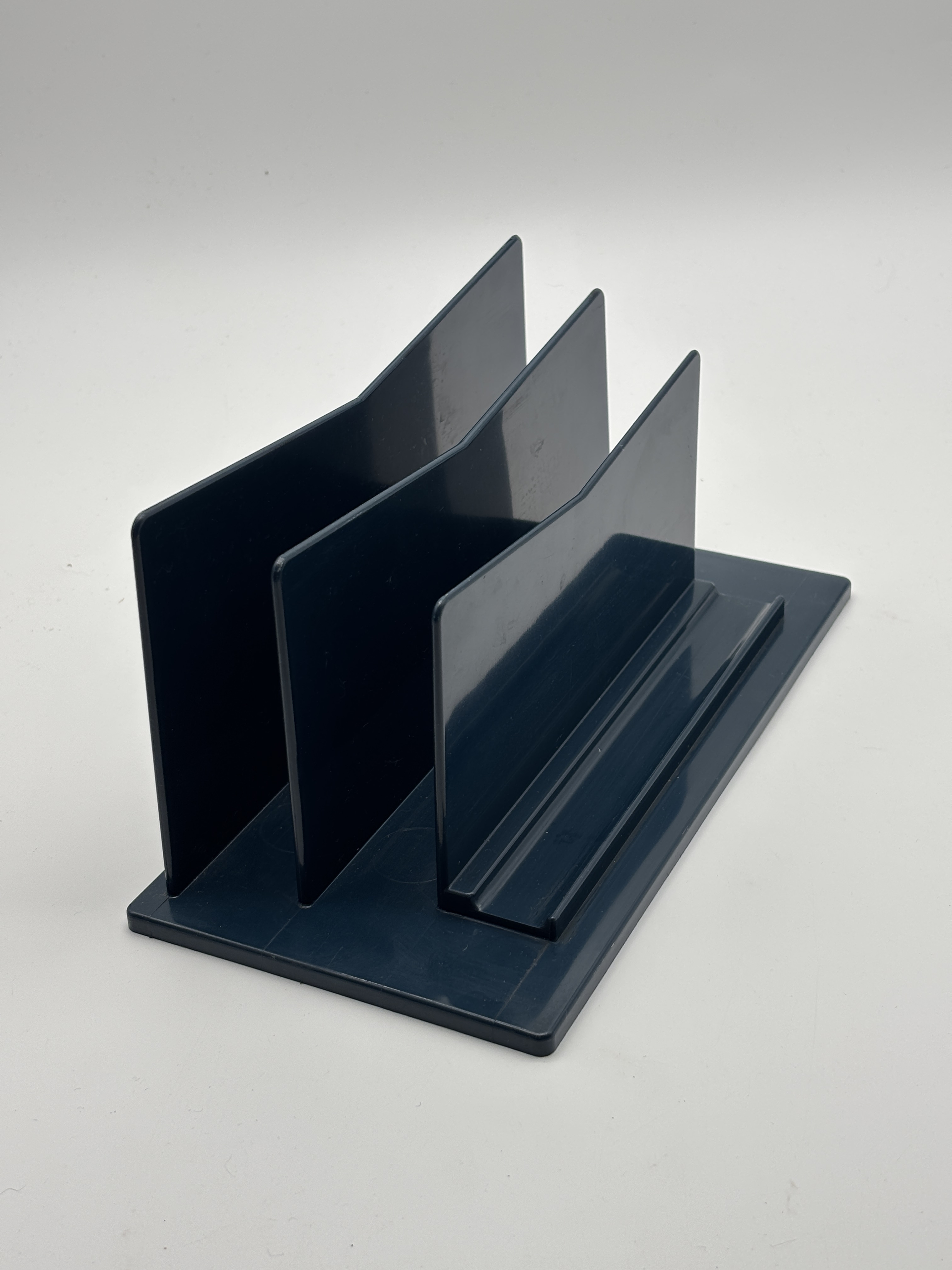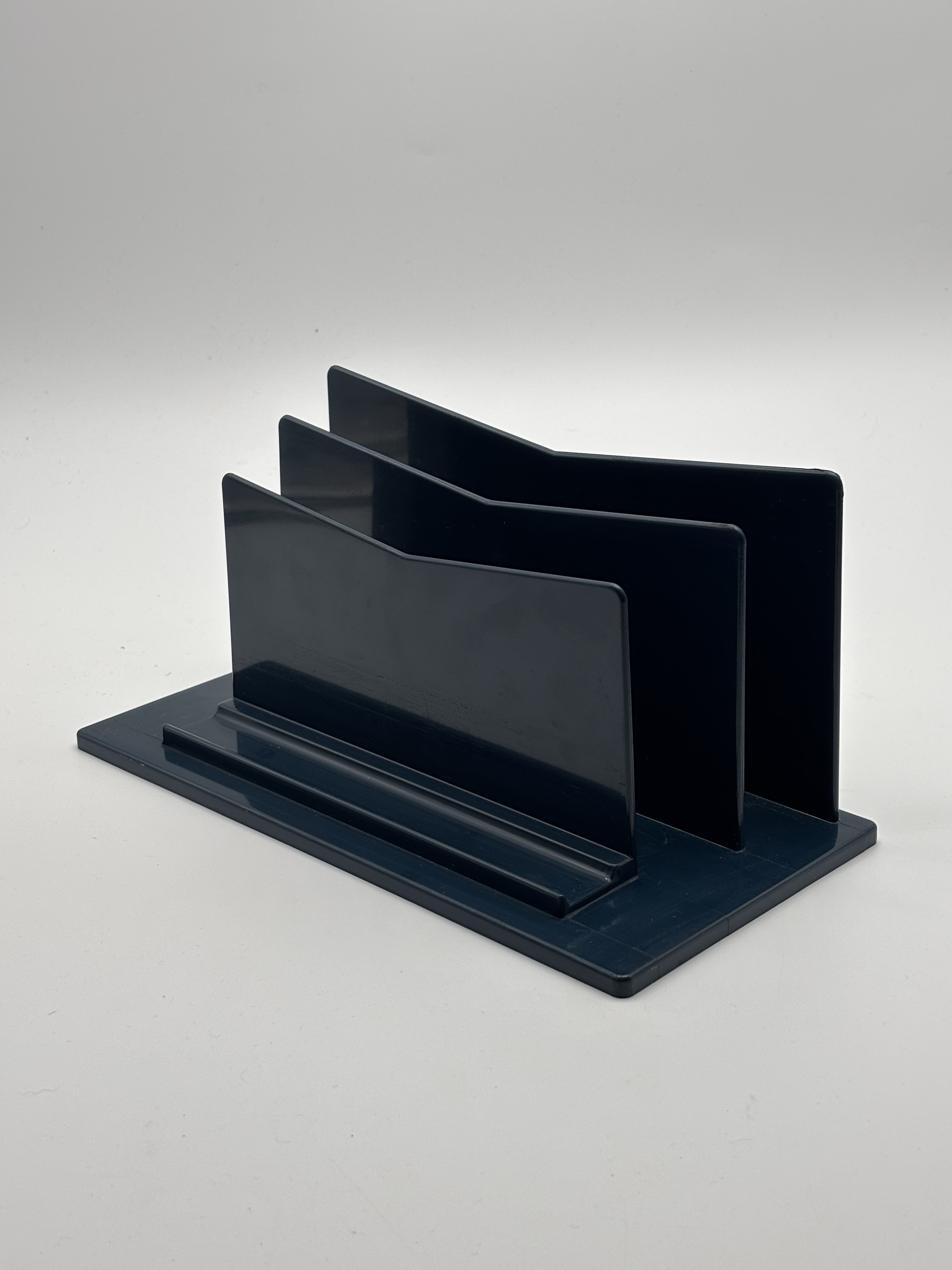Dit is een vintage donkerblauw kunststof brievenrek / bureau-organizer uit de jaren 80 van het Franse merk LYNX.