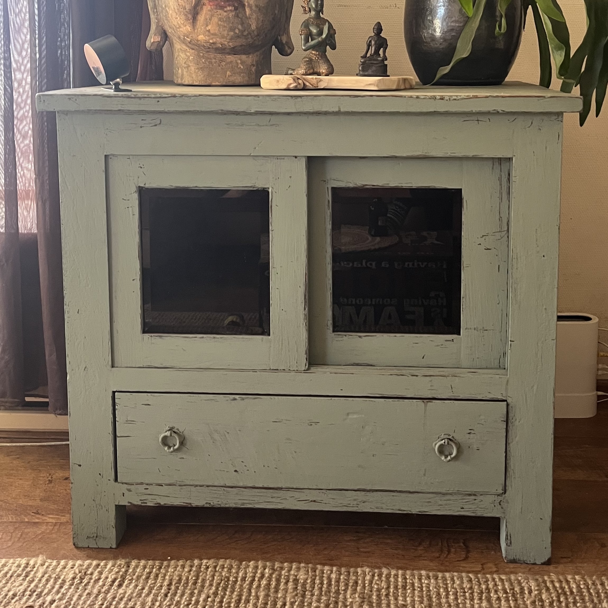 Antieke boerenkast in goede staat. Geschilderd in een matte kleur Exclusief woonaccessoires!