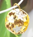 1-50 GOUDkleurige belletjes met witte en gele BLOEMetjes, 15mm