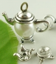 10-15 setjes kralenkapjes THEEpot, tibetaans zilver! 21x9x4,10x10x3mm excl. kraal en kettelstift
