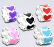 10 tibetaans zilveren kralen/bedels 8x5mm pandora-style, hartjes met diverse kleuren emaille