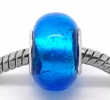 20 BLAUWe folie glaskralen/bedels pandora-style met verzilverde kern, 14x10mm