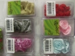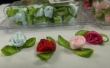 20 doosjes met satijnen bloemen diverse soorten en maten (ongeveer 20-30mm) per doosje 5-30 stuks (hangt van de grootte van de bloemen af)