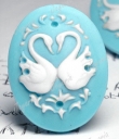 2x cabouchon met ZWANEN van resin maat 41,5x31,5x7mm