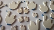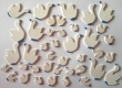 40 houten gansjes, 40x32x2mm, 22x17x2mm, 17x12x2mm in wit met blauw, dubbelzijdig beschilderd