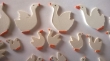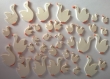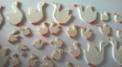 40 houten gansjes, 40x32x2mm, 22x17x2mm, 17x12x2mm in wit met oranje, dubbelzijdig beschilderd