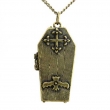 klik voor meer foto's! antiek bronskleurige ketting met COFFIN doodskist hanger, kan open en sluit met magneetje, Vintage Gothic Steampunk Punk Rock
