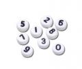 cijferkralen, kunststof, wit met zwarte cijfers, 7mm 0,05 per stuk!!! te gebruiken in combinatie met letterkralen!