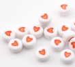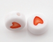 HARTjeskralen, kunststof, wit met rode HARTjes, 7x3,7mm leuk om te gebruiken tussen de LETTERkralen!!!