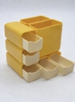 Dit is een vintage gele plastic bureau-organizer uit de jaren 70. HOF Vintage Desk Organizer Space Age.